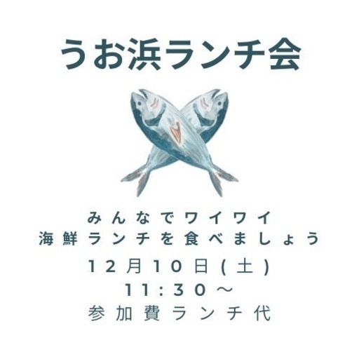 12月10日(土)11:30〜うお浜ランチ会に一緒に行きませんか?おいしいお魚食べながら、ワイワイ楽しみましょう。現地集合です。