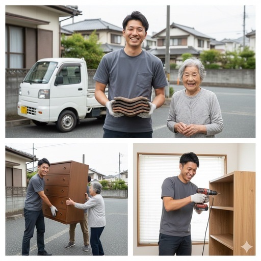 東郷町在住の個人です。地域の力仕事のお手伝いをしています。「一人では動かせない家具の移動」や「お庭の枝切り・片付け」「DIYのサポート」など、人手が必要な時はありませんか?■お手伝いの例• 庭木の枝切り(3mまで・手ノコ作業)と、その後の片付け• 室内や倉庫の重い荷物の整理・積み込み• その他、力仕事全般軽トラックを所有していますので、お片付けの際や資材の準備などで車が必要な場合も、協力できることがあるかと思います。助手席への同乗も可能です。車内は完全禁煙です。※業者ではなく個人の「助け合い」です。お礼(ガソリン代+お茶代程度)で柔軟に対応します。