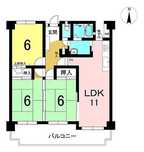 間取り/面積 | 3LDK / 66.48m²(壁心) |
