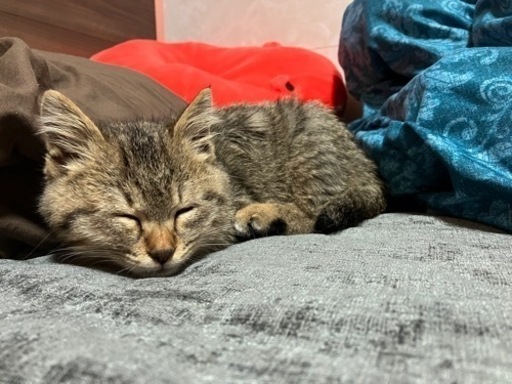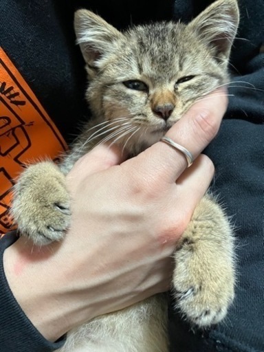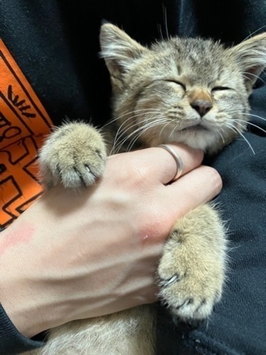 ◆性格や特徴雨の中弱っているところを保護しました。おそらく生後2~3ヶ月くらいの女の子です✨ご飯を与えたらすっかり元気になって、うんちもおしっこもしっかり出来てます!飼い主さんがいるかいないかどうかは届出済です。家では子供がアレルギーをもっていて飼えません😖性格はとても人懐っこくて、写真みたいに肩に乗って甘えてきたり気づいたら横にいて一緒に寝たりテレビを見たりしてます♡撫でられるのも大好きみたいで、ゴロゴロと喉を鳴らしてすぐうっとりした顔をしてきます☺️ちょっとたぬきみたいなおっとりした顔つきの可愛らしい子です🍀.*しっぽが少し短めなところもチャームポイントです♡仕事の関係もありまだ病院には行けていません。寂しがり屋なネコちゃんなので出来ればネコちゃんだけでお留守番する時間が短く済む方に引き取ってもらえればと思います😖💦素敵な飼い主さんとのご縁があるように心から願っております。どうか、私たちの代わりにこの子をお迎えしてあげてください。よろしくお願いします🙇♀️応募される際は、お名前、お住い、待ち合わせ可能な時間帯、教えてください🙇♀️◆健康状態ご飯もしっかり食べてうんちおしっこも出来ます!健康体です😊◆その他
