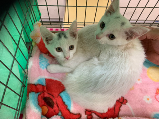 ◆募集に至ったやむを得ない事情野良さんが外で産んだ子を保護しました。(警察に届け出済み)応募の際、簡単なご住所をお知らせ下さい。◆性格や特徴ほぼ白ですが、頭に一部黒い部分があります。生後2ヶ月ぐらい。オスとメスの兄妹です。とても大人しい子たちです。◆健康状態動物病院で健康チェック済み◆ワクチンの接種、去勢手術の有無ワクチン接種済◆その他co.jp次の方には譲渡しておりませんので、 ご了承ください。 ・同棲カップルの方 ・ ペット不可住宅の方 ・ 5頭以上の多頭飼いの方 ・ 万一の場合に契約を引き継いでくれる 保証人のいない一人暮らしの方と 高齢者のみの世帯 ・ 先住猫ちゃんを戸外に 自由に出入りさせている方 ・ 先住猫ちゃんが未手術、未ワクチンの方 ・ お留守番が長い方 (成猫8時間以上、 子猫4時間以上) ・ その他、 保護主によって 条件が違いますのでお確かめください。 ※小さなお子様がみえる場合など譲渡する猫ちゃんの月齢を制限させていただくことも