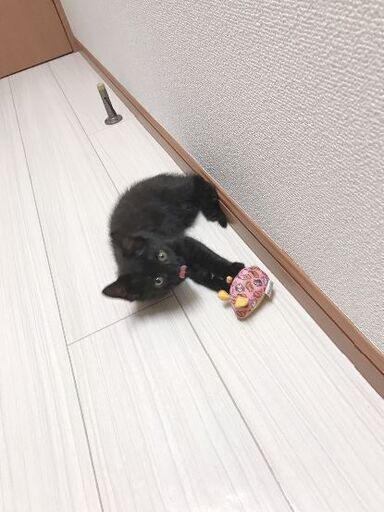 ◆募集に至ったやむをえない事情ご覧頂き誠にありがとうございます。7月25日(土)に自転車で通勤途中に車通りの多い交差点で鳴いていました。近くに親兄弟の姿は見えず、連日雨も降っており、足に怪我をしていたため保護しました。保護当時、足の怪我はほとんど治っており、とても元気でしたが食事はまだミルクでした。飼い猫かどうか最寄りの警察署や保健所など届け出の確認をした結果、飼い主はいませんでしたが、我が家には数日前に里子に来たばかりの先住猫がおり、申し訳ありませんがこの子までは飼えません。そのため、生後2ヶ月くらいになりカリカリが食べられるようになるまで我が家で保護し、その後新しい家族を探すために募集をさせて頂きました。◆性格や特徴女の子です。とても活発で元気です。気性は荒く無く甘えん坊です。遊び好きです。黒猫ですが、胸とお腹が白いのがキュートです。毛足が少しだけ長めでフワフワです。よく見ると黒の中に縞模様があります。尻尾はまっすぐで綺麗です。ミルクの時から面倒を見ているため、情もわいており親バカですがメチャメチャ可愛いです。◆健康状態保護した翌日、病院で健康診断を受けました。結果は少し体は小さいですが、生後3週間の女の子で健康状態は良好とのことでした。ワクチンと避妊手術はまだ早いのでレボリューションと便の検査をしました。便の検査は良好でした。◆ワクチン接種、去勢手術の有無ワクチン接種と避妊手術はまだ小さいためしておりません。◆その他里親になって頂く立場で条件を提示するのは誠に申し訳ありませんが、命のやりとりですので何卒ご理解のほどお願い致します。・ペット可の住宅であること ・完全室内飼いをしてくださること・終生愛情を持って飼育をしてくださること ・年に一度のワクチンをしてくださること・具合が悪い時はすぐに動物病院に連れて行ってくださること・避妊手術をしてくださること・譲渡後にしばらくの間、近況報告をしてくださること・身分証明書を提示してくださること・譲渡契約書にサインを頂けること・家族全員に飼育の同意を得ていること・あなた自身に飼育出来ない事情が発生した場合に家族など飼育を引き継いでもらえる人がいること・家族に猫アレルギーの方がいないこと・飼育環境の確認のため、ご自宅に訪問させて頂ける方あくまでも個体差はありますが、仔猫は里親さんのお家にもらわれてから2~3日は寂しさから夜鳴きをします。また、夜行性のため夜中から朝方にかけて走り回ります。人間との生活に慣れてくるとその様な行動も少なくなり、静かにすごしてくれるようになりますが、それまでは寝不足の日々で辛い思いをされることもあります。これは猫の習性ですので誰が悪いわけではありません。そこも、ご理解とご承知の上でよくご検討して頂き応募をお願い致します。応募をして頂く際は下記の情報の記載をお願い致します。・お名前・市までで構いませんので住所・同居の家族構成・先住ペットの有無・ペットの飼育歴・飼育環境どうか良いご縁がありますように。よろしくお願い致します。