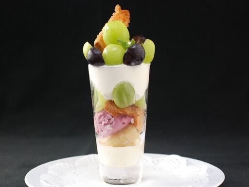 みずみずしいフレッシュシャインマスカットをたっぷりと贅沢に使用した、なんとも上品なパフェです🍇自家製の生クリームと濃厚なバニラアイスとの相性もばっちりです♬