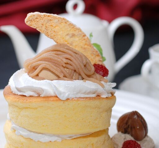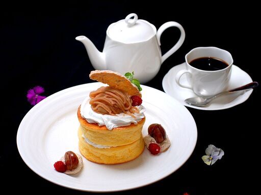 しっとりと焼き上げたパンケーキに自家製の生クリームをたっぷりと乗せて、旬の栗で仕上げたなんとも上品なスイーツです🌰