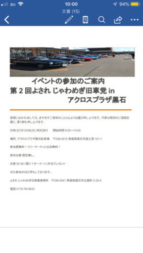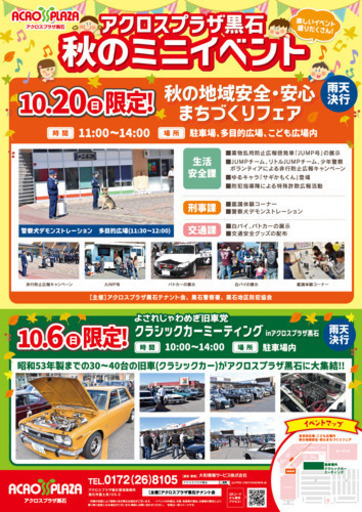 2019/10/06 青森県アクロスプラザ黒石にクラシックカー大集合!!時間 9:00〜14:00まで是非、見学に来て下さい。尚、フリーマーケット及び旧車を持っているかた参加のほどお待ちしております。参加費無料!