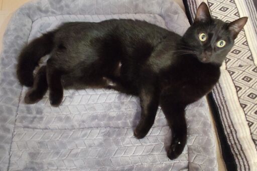 ◆性格や特徴おもちゃで遊ぶのが大好きな甘えん坊です。普段はしずかですが、ごはんの時はめちゃくちゃおしゃべりになります。人馴れ訓練中ですが、爪は切らせてくれます。ヘソ天で腕枕もさせてくれるときもあります。我が家の先住猫とも、1週間ほどで仲良くなってくれました幸せを呼ぶ鍵シッポです。◆健康状態自宅の庭でぐったりしているのを保護しました。病院の診断では風邪だったようで、いまではすっかり元気です。とにかく食べるのが大好きです。エイズ白血病陰性去勢手術済ワクチン接種済◆その他譲渡の条件・完全室内飼い・家族全員が猫好き・保護猫に理解のある方譲渡後は様子を教えていただけると嬉しいです