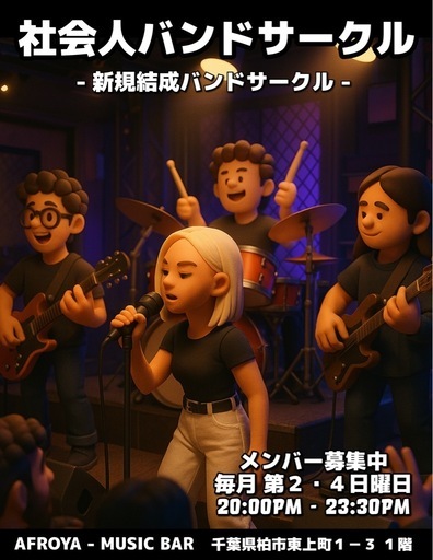 #AFROYA #ミュージックバー #柏 #ライブバー #社会人バンド #ボーカル #ギター #ベース #ドラム #キーボード #パーカッション #柏バンドメンバー募集 #千葉バンドメンバー募集