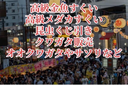 南柏まつり金魚すくいメダカすくい昆虫くじクワガタ販売などブルースターダストゴールドラメみゆきフルボディブラックラメ紅白ラメサファイアネプチューン
