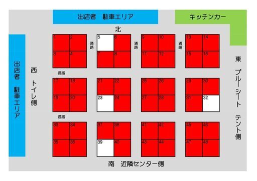 ※ジモティーのユーザー登録がお済でない、ゲストユーザー様 お申込みの前に、ユーザー登録をお願い致します。 ゲストユーザーのままですと、受信は可能ですが、 返信に不具合が生じる場合が御座います。 何卒、ご理解、ご協力のほど宜しくお願い致します。 ★11/3(月) フリマ出店者募集! 柏市・南部地区 【南部文化祭 ふれあいの集い】主催:柏市南部地域ふるさと協議会場所:柏市南部公園(南部近隣センター裏手の広場)柏市新逆井2丁目5募集区画数48区画一コマ(一区画)3m×3m四コマ(四区画)ごとに田の字に組みますので、いずれのコマ(区画)も角になます。(二辺が有効になります。)参加料:一コマ(一区画)2,000円※開催当日に現地にて徴収致します。搬入時間:am 8:30~販売時間:am10:00~搬出時間:pm 2:30~※駐車エリア御座います。(出店エリアの周り、西トイレ側と北側です。 搬入時は出店場所の近くにて荷下ろし後、 直ぐに駐車エリアに移動願います。 場内、込み合いますと、危険です。 譲り合いで、スムーズな搬入を心がけて下さい。 場内の事故については、責任を負いかねます。 自己責任となります。 予め、ご了承下さい。 勿論、駐車エリアから手運びでも大丈夫です。 ご理解、協力の程、宜しくお願い致します。 【お申込み】下記①‐⑤のお申込み情報をお知らせください。①希望の区画番号 ※白色の区画が空きです。※画像5にある区画表の空き状況を参照に、 希望の区画番号をお知らせください。※毎日更新致しますが、タイミングによっては、 ご希望の番号が既に埋まっている場合が御座います。 予め、ご了承下さい。 募集区画が定数になり次第、終了となります。 早期に終了する場合が御座います。 お早めにお申し込み下さい。②出店者様の氏名(代表者1名:フルネーム)③出店者様の氏名(フリガナ)④ご連絡先電話番号(日中、繋がる番号) ※悪天候などによる中止の際のご連絡に使用致します。⑤出店内容※例)家庭の不用品・雑貨・日用品・衣類・玩具 手作り(ハンドメイド)・食器類・ゲーム 音楽ソフト(CD・DVD)・クジ・似顔絵、 などなど、主な出品物をお知らせください。※飲食の提供・薬物・危険物などの出品は 固くお断り致します。 飲食はキッチンカーが出店致します。※食品、一般市販されている物や 個包装されている物などはOKです。⑥その他(ご相談)※キャンセル待ち希望※整体・カイロ・指圧などの施術サービス 出店につてはご相談下さい。ご不明な点が御座いましたら、こちらのジモティーの問い合わせフォームよりお問い合わせ下さい。折り返しご連絡致します。尚、返信が遅くなる場合が御座います。予め、ご容赦ください。