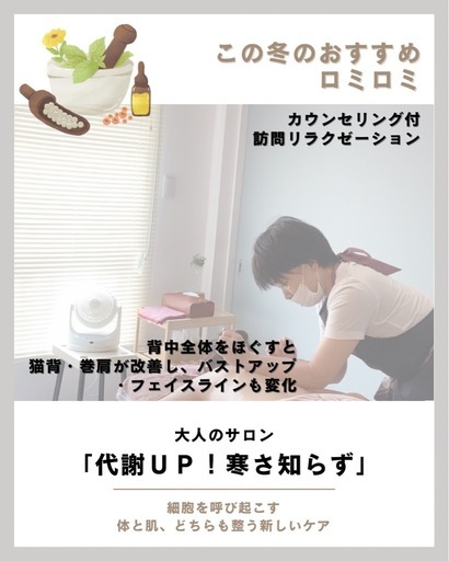今年も1ヶ月を切りました🎄毎朝、寒さを感じ⛄️さらに寒くなって行きますね❄︎「代謝UP!寒さ知らず」と題しましてハワイ伝統のリラクゼーション【ロミロミ】を行っております🌴🌈シェアサロンでの施術も行っております🎶ご連絡お待ちいたしております😄(🅿️無料駐車場完備)※60分コースはうつ伏せのみ🛏️※男性限定メニューはご紹介制とさせていただきます🙏🌴🌴🌴🌴🌴🌴🌴🌴🌴当サロンではお電話でも随時受け付けております!☎️080-2488-3640✉️ kakurennbou3@gmail.com7時から16時まで営業※訪問のご希望の場合営業時間外もご対応させていただきます。【完全予約制】支払い方法/現金もしくはPayPayご不明な点がございましたら遠慮なくお問い合わせ下さい。@achimayun