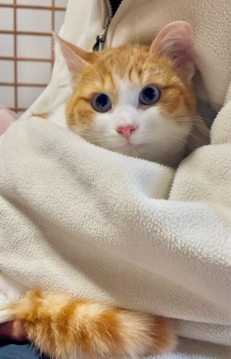 ◆性格や特徴保護主さんの自宅近くで保護されましたまた完全に人馴れはしていませんが爪を立てたり噛み付いたりしない優しい性格の男の子です。たくさんの愛情をかけてくださるずっとの家族を探しています☺️茶白にブルーアイの組み合わせが大変珍しい個性的なイケメンくん届出済み(飼い主不在を確認済み)◆健康状態大変良好です。ごはんもよく食べて元気いっぱいです・血液検査 済み(エイズ・白血病共に陰性)・5種ワクチン1回目 済み・ネクスガードキャットコンボL 済み (ノミダニ回虫駆除)★去勢手術をご希望の場合は動物保護団体と連携のある病院をご紹介できます(雄猫5,000円)◆その他①【完全室内飼い】と【年に1度のワクチン】病気や怪我の際は医療を受けさせることのお約束をお願いします。②お問い合わせを頂く際に【猫飼育経験の有無】と【ご家族構成に年齢の記載】と【お住まいのエリア】のご回答をお願いします。③お見合いは 長生郡長生村 の保護主さんの自宅まで来ていただくかたちとなります。写真とイメージが違う等の問題がなければ、お見合い当日そのままご自宅に連れて帰っていただきトライアル(まずは1週間のお試し期間)に入る流れとなりますので、必ず【キャリーバッグ】をご持参ください。④トライアルに入る事が決まりましたら【身分証のコピー】をお預かりさせて頂きます。これは譲渡契約書に代わる大切なお約束事となりますので、必ずご用意いただきますようよろしくお願いいたします。最後まで家族として大切にしてくださる方にお譲りしたいと思っています。どうぞよろしくお願いします。