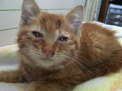 猫の里親さん募集します2017.06.14 保護前日の夜から泣いていたのはわかったのですが暗闇の為今日保護しました。茶トラ、オス 毛並はとてもキレイです美猫さんです人懐こいです目ヤニ、鼻水をだしています。先ほど保護したてなので病院検査等はしておりません。愛情を持って可愛がって頂ける方。単身ではなくご家族でお住まいの方。当方、大型犬を飼っており飼えないので里親さん募集です。追記病院に連れて行き、目ヤニ、鼻水の状況を確認したところ猫風邪で次第に回復していくとのこと。また、性別ですがメスと思ってたのですが良く獣医さんに調べてもらいオスであるとわかりました。失礼しました。