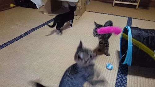 ◆募集経緯家に迷い込んで来た猫ちゃんが、2017年4月末頃に庭で赤ちゃんを産みました。先住猫がいるため、我が家では飼えません‥‥走り回って遊ぶの大好き♪ごはん食べるの大好きな子達です!!家族の一員として生涯可愛がってくれる方、よろしくお願いいたします。◆性格や特徴3匹みんな女の子です☆★白黒ちゃん:引っ込み思案ではあるが、何に でも興味津々!!キジトラちゃん:猫じゃらし遊ぶの大好き。 (2匹) 活発です! 甘えん坊で抱っこが大好き◆健康状態食欲旺盛で、よく走り回ってます!!◆ワクチン摂取、去勢手術の有無まだ出来ておりません◆その他質問・問い合わせ等、お気軽に連絡ください。夕方まで仕事をしていますので、返事は夜になってしまいます。