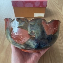 華山 水色の花柄彫刻が施されたの美しいボウル...