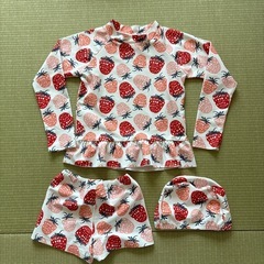 ワンピースドレス ノースリーブ ショートパンツ オーバーパンツ 水着(トップス、パンツ、帽子) 120センチ