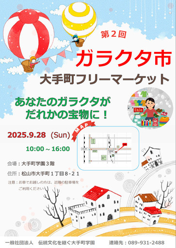 開催日:9月28日(日)10:00~16:00(搬入時間は当日9:00~となります)出店の品物は、お家の余剰品・クローゼットの着なくなった洋服や使わなくなった小物類・サイズアウトのおもちゃや子供服などありましたら、一緒に出店されてみませんか?ハンドメイドのアクセサリーや小物類なども販売いただけます。ブースには限りがありますので、先着順とさせていただきます。〈出品できない品物〉 ・生もの、動物や昆虫類 ・優待券、商品券、クオカード等の金券類 ・電子データ、知的財産権を侵害するもの ・偽ブランド品などの正規品と確証できないもの ・アルコール飲料、たばこ類、医薬品類 出店料・・・2m×2mブース 1,000円/区画