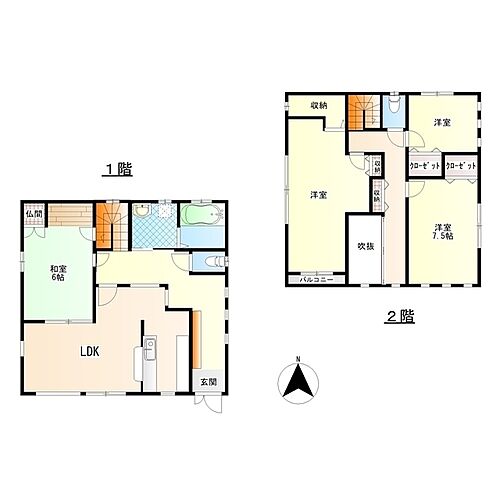 ■間取り詳細:リビングダイニングキッチン 12帖、和室 6畳、洋室 14帖、洋室 7.5帖、洋室 4.5帖、収納 3帖