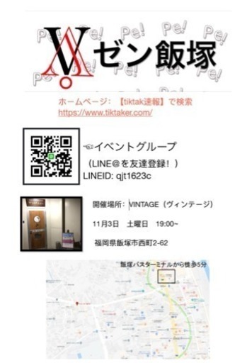 筑豊で11月3日にTikTok有名曲(主に洋楽k-popレゲエ)を主催するのですが、あまり筑豊に友達が居ないため、友達のなってくださる方は無料で招待します!是非ご連絡ください☺️