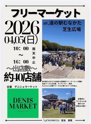 デニシェマーケット 道の駅むなかた4月5日開催道の駅むなかた出店ブース募集中です!!古着、ハンドメイド商品、キッチンカーなどさまざまなブース出店可能です!フリーマーケットデビューの方、久しぶりの出店の方どなたでも大歓迎でございます!たくさんの出店者様お待ちしております!!下のURLからお申し込み可能です!! https://docs.google.com/forms/d/1f4MYoojadHROqpgadjsfjuXtJLNk_oyInzNj-xGS6Vo/viewform
