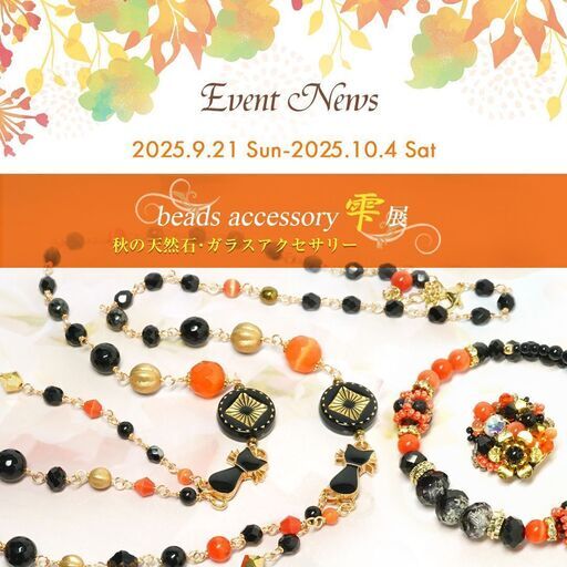雑貨屋「らんぷかん」メインスペースにて、秋冬の「beads accsesory 雫」展を開催♪天然石やとんぼ玉など、様々なビーズを使用したアクセサリーを展示・販売いたします。秋らしいこっくりしたカラーや、通年で活躍するアクセサリーなど、200点以上をご覧いただけます♪ハロウィンカラーのアクセサリーも登場!あなたのお気に入りが見つかりますように☆*****beads accessory 雫 オンラインショップ*****■Creema https://www.creema.jp/c/beads-shizuku■minne https://minne.com/@beads-szk■iichi https://www.iichi.com/shop/accessory_shizuku※イベント期間中は一部作品の販売を休止します。***********************************************お店にはレンタルBOXに各作家さんの作品や、色んな雑貨も。ぜひお出かけください♪■□━━━━━━━━━━━━━━□■ イベント詳細■□━━━━━━━━━━━━━━□■◇雑貨屋 らんぷかん◇2025/9/21(日) 〜 10/4(土)【営業時間】9:30-18:30<期間中の店休日:9/23、9/25、9/28>場所:福岡県福岡市東区土井1丁目19-1☆JR香椎線 土井駅 の近くです。入口正面左側メインスペース☆(反対側に常設のレンタルBOXの棚スペースもあります)