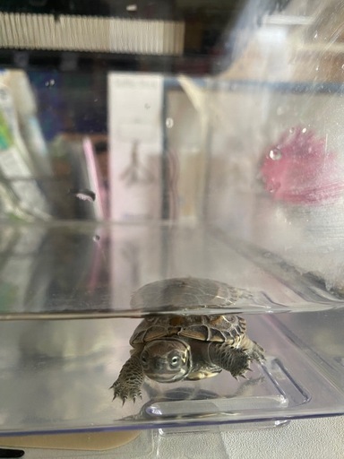 ◆性格や特徴性格は臆病な所もありますが、ご飯の時は手から直接食べる時もあります。音にびっくりして、岩場の中に隠れたりします。◆健康状態健康状態は良好かと思います。◆その他まだ子亀で、臆病な所があるので、なるべく静かめなお部屋で、亀さんの環境を作って貰えたら助かります。最後まで可愛がっていただける方、宜しくお願いします。必要であれば、今使用中の水槽、岩場、水温計、スポイド、ライトなど、お譲りします。