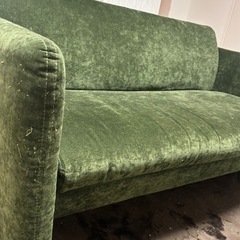 3人掛けソファーになります。 カラー グリーン ペット(猫)を飼っている為、両端に糸が出ていますがカバー等を付ければ問題ないかと思われます。ご了承下さい。 お取引が28日、29日のみとなっております。 3Fからの運搬をお願いしております。 もし、1人の場合は自分が手伝います! 値下げも考えておりますのでご連絡お待ちしております!