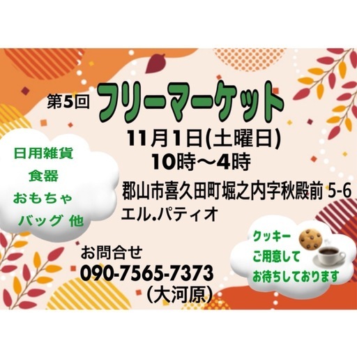 第5回フリーマーケット開催!!是非お誘い合わせの上ご来場お待ち致してしております♡その他→ベビー用品、絵本、子供服、玩具、ぬいぐるみ、ペット用品、生活雑貨、コスメ、食器類、沖縄珊瑚、ハンドメイド作品、ハーバリウム、アクセサリー、インテリア小物、etc.....豊富に取り揃えてあります!新商品多数入りました!商品50円から販売中場所は画像5枚目をご覧下さい場所が不安な方はお問い合わせ下さい( ꈍᴗꈍ)Googleマップで案内させて頂きますꯁꯧ