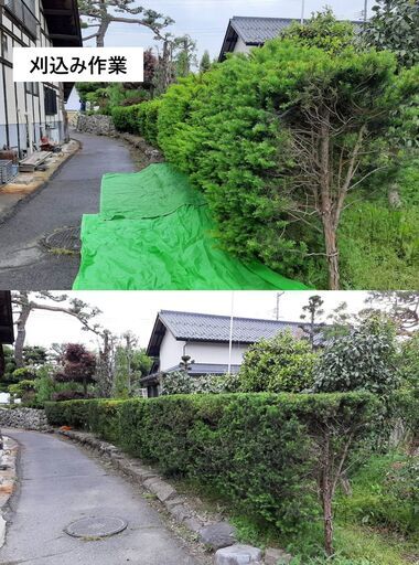 ご覧いただき有難うございます。ヒタキグリーンの海野と申します。いわき市を中心に庭のお手入れ、木の剪定、伐採などをやらせていただいています。⚫︎忙しくてお庭の手入れをする時間が無い方。⚫︎高齢になり脚立に上って手入れすることが難しくなった方。⚫︎これまでお願いしていた庭師が引退されてお困りの方。⚫︎遠方に相続した家や空き家がありお手入れに行くのが難しい方。ぜひヒタキグリーンにお任せください!庭木の手入れや剪定をしないで放置することにはデメリットがたくさんあります。⚫︎見た目が悪くなり、住宅全体の評価が下がってしまいます。⚫︎どんどん大きくなり、節約のつもりがいずれ高木剪定・伐採で多額の費用が掛かります。⚫︎枝や葉が密集し湿気がこもりやすくなるため樹木の病気や害虫の被害に遭いやすくなります。⚫︎枝や葉が生い茂ると目隠しになり泥棒に侵入されやすい環境になってしまいます。⚫︎枝や葉が敷地から道路や隣家に飛び出し、通行の妨げやご近所トラブルになります。⚫︎松は3年ほど手入れしないと間延びしてしまい元のきれいな形に戻せなくなります。ぜひ庭のお手入れをして問題を解消しましょう。費用の目安ですが、職人1人1日(8:30-16:30*昼1時間、午前・午後各30分の休憩あり)の作業で20,000円です。↑一般的な庭の手入れ(剪定、刈り込み、掃除)の場合です。※ゴミの処分や特殊な作業(高木剪定や伐採・抜根、消毒・除草剤散布など)は別途費用が掛かります。★高いと思われるかも知れませんが、専用の道具も持たず経験もあまりない一般の人が作業した場合の2〜3倍の作業量はこなせます。ご自分で2〜3日もかけて作業する手間を考えたら妥当では無いかと思います。お庭に関するお困り事がありましたら遠慮なくご相談ください。お見積もりは無料です。まずはジモティーか下記のメールアドレス宛にご連絡ください。よろしくお願い致します。ヒタキグリーン 二級造園技能士 海野メール:hitakigreen2024@gmail.com
