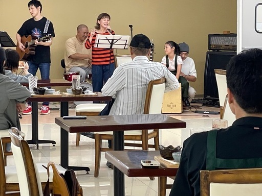 岐阜市洞1005-3黒野農園イベント広場内サウンドカフェバーにて開催。14.15.16日の金土日19時より、幅広い年齢層のお友達ができます。どなたでもお気軽にご参加ください。楽器体験、生バンドで歌ったり、バンドに参加したりと、飽きない時間過ごせます。会費は軽食おつまみ付千円とワンドリンク400円から。