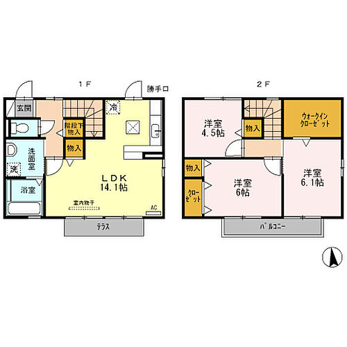 ■間取り詳細:リビングダイニングキッチン 14.1帖、洋室 4.5帖、洋室 6帖、洋室 6.1帖