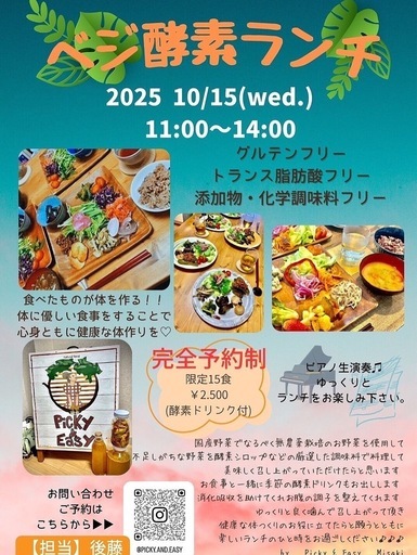 お待たせ致しました😃Future Salonの推し💕全てが無農薬、天然素材からできた酵素❣️限定15食ランチ ベジ酵素ランチ予約開始です⭐️生ピアノ演奏を、聴きながら、ゆっくり体と頭を癒しに来てください😃先着順にて、締切となりますので、お早めにご予約、お待ちしております😃#酵素#推し#ランチ#先着順#酵素ランチ#ピアノ#岐阜市#鷺山#futuresalon