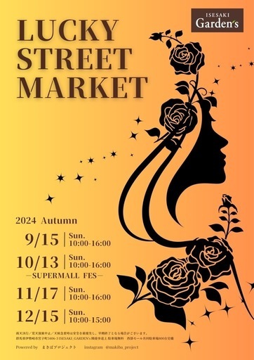 ⚠︎出店位置が公開されましたので2枚目でご確認下さい⚠︎9月15日日曜日LUCKY STREET MARKETにてメダカ販売、メダカすくいで出店します!個体販売では春生まれの個体や今年の種親など50セット程イベント特価でお持ちする予定です!今回のイベントでは個体販売に力を入れますので是非お立ち寄り下さい!日にちが近くなりましたら出店位置が公開されますのでご確認のうえ鹿嶋めだかのブースに遊びに来て下さい!他にもキッチンカーや様々なジャンルの出店者様が出店していますので楽しい休日になること間違いなしです!当日は画像3枚目の鹿嶋めだかのTシャツを着ていますのでお気軽にお声がけください✨皆様とお会いできることを楽しみにしています😊【イベント詳細】LUCKY STREET MARKET開催日2024年09月15日(日)開催時間10:00~16:00場所いせさきガーデンズ群馬県伊勢崎市 宮子町3406−3