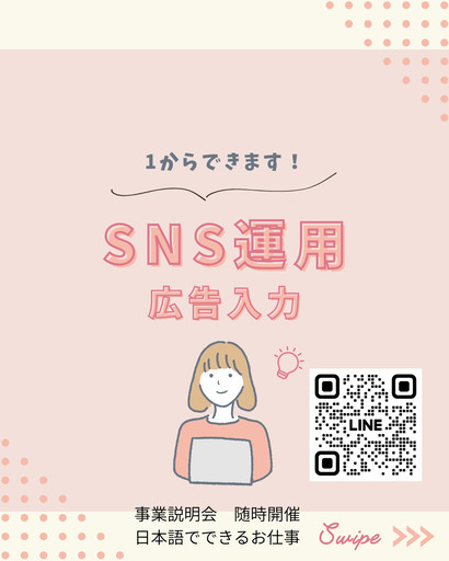 【作業内容】求人記事作成、お問い合わせやり取り、学びながら稼 いでいただきます。【活動時間】ご自身の出来る時間帯で大丈夫です。1日1時間〜OK※長期的にお付き合いできる方で、業 務 連 絡をコマメにとれる方を希望。【報 酬】基本的にはご自身が稼 ぎ た い金額目標に向けてお 仕 事をして頂きます。※やる気のある方を募集しています。説明会、個別面談にて選定させていただきます。もしご興味、質問などあれば下記連絡先までお問い合わせください。問い合わせ先⇨ https://lin.ee/qx8w7HV◎お 仕 事 開始までの流れアンケート審査↓説明会↓個別ヒアリング↓お 仕 事 開 始