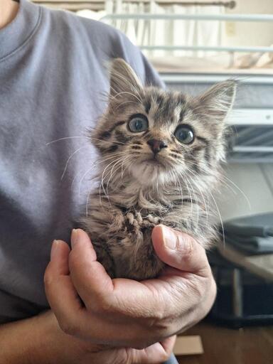 ◆性格や特徴まだ保護して3日目なのでそこまで人に慣れてませんが、シャーはするけど噛んだりパンチはない子です。今人訓練中です。おしっこ、うんちトイレで出来るいいこです。◆健康状態白血病、ネコエイズ陰性でした。フロントラインもしていただきました。来週初めてのワクチン予定です。◆その他ご近所のご主人の仕事先で保護されました。パパネコさんママネコさんは確認済みで去勢避妊を考えてた所妊娠発覚。産んでもらったらこの可愛さでしたwww一応保健所には連絡済みです。パパネコさん長毛なのでこの子も長毛です。譲渡の際はこちらからご自宅にお伺いさせて頂きます。宜しくお願い致します。一人暮らし、同棲カップル、借家、赤ちゃんの居るお宅はごめんなさい🙏