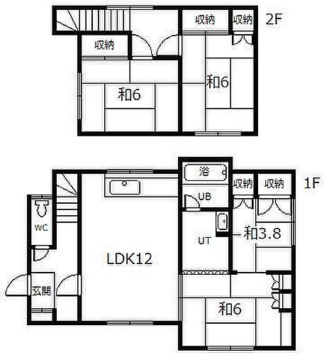 ■間取り詳細:リビングダイニングキッチン 12帖、和室 3.8畳、和室 6畳、和室 6畳、和室 6畳