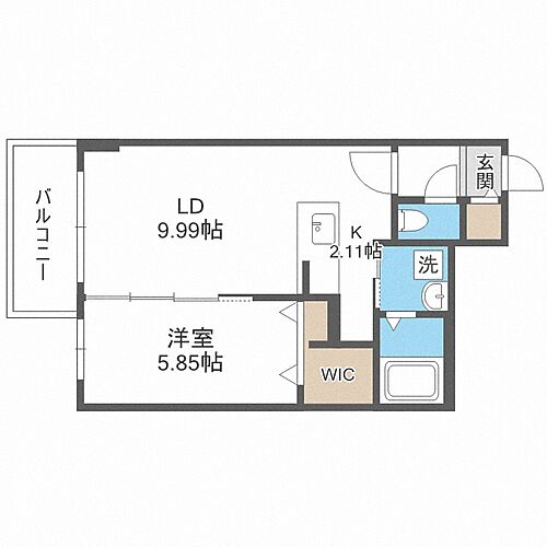 ■間取り詳細:リビングダイニング 9.9帖、キッチン 2.1帖、洋室 5.8帖