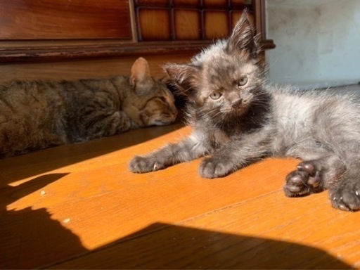 ◆性格や特徴おじさんの家で出産しました。産まれたのが6月6日で2ヶ月経ちました。♦︎黒猫ですが真っ黒ではなく薄く虎模様が入ってるように見えます。※産まれて間もないので必要な検査はしてません。※前の飼い主さんは不在です。 なので親猫はおじさんが最期まで面倒みると言ってます。子育てが終わると母猫は去勢手術する予定です。◆健康状態※健康状態は良好です!!※産まれて2ヶ月経ってますがまだ検査などはしていません。※少し小さめですが人懐っこくて甘えん坊です。※鶏肉を割いたやつなどご飯は食べてます。※元気よく走り回って猫じゃらし等でたくさん遊びます!!◆その他※前の飼い主さんは不在です。 なので親猫はおじさんが最期まで面倒みると言ってます。子育て終了後には去勢手術をする予定です。※商品ではなく命を預かるという責任を持てる方にだけお譲りしたいと思います。※あまり条件は出したくないですが少し無責任な方が何人か居たので条件付きです。※先住猫が居なく、猫飼育経験者で、やり取りがスムーズにでき猫ちゃんが少し大きくなってから写真を何枚かくれる方を希望します。※ジモティで譲渡等初心者なのでお返事が遅れる場合があります。なるべく早めにお返事できるように心がけます。よろしくお願いします。