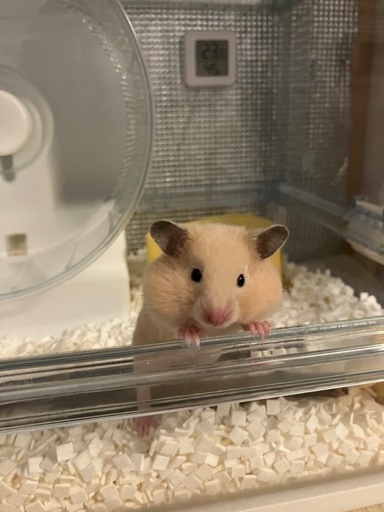 写真は餌を口に詰めてるところです🐹◆性格や特徴性格-元気性別女の子◆健康状態便-普通食欲-しっかり食べる水-しっかり飲む体重-現在34グラム◆その他・ケージなども欲しい方は別ページで購入お願いします・寒い冬対策をきちんとできる方(ハムスターはケージ内の温度21度〜26度程度に一定に保つ)・過去何匹もハムスターを飼いましたがグラスハーモニーの給水ボトルは不良品が多すぎるので使わないで欲しいです。他のしっかり水の出る給水器を使ってくれる方希望・床材は柔心地、広葉樹はくしゃみしている時があったので紙タイプなど様子を見ながら使って欲しいです