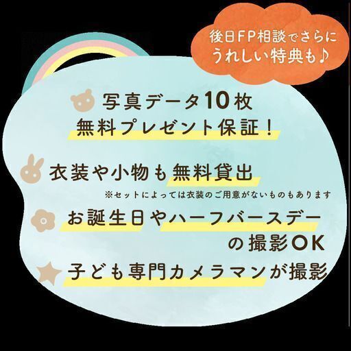 \大人気★はいチーズ!無料撮影会➕ライフプラン相談会/✅ 累計10000組参加の大人気イベント!✅ スマホ・デジカメで撮影し放題✅ カメラマン撮影データ10枚プレゼント♪✅ 衣装・小物も無料💛✅ ハーフバースデー・お誕生日の記念に★📌 イベント内容1.プロカメラマン📸による無料撮影(15分程度)🎶今しかないお子様を可愛い撮影セットで撮っちゃおう🎶❣️撮影セット❣️◼️しろくま2.家族のライフプラン相談会👪(20分程度)◀︎子育て世代の気になるお金のお悩みを解消!▶️「学資保険、どれを選んだらよい?」「医療保険、見直すべき?」「住宅ローンを検討している」など、FP👩⚖️が質問に丁寧にお答えします。無理な営業は一切致しませんのでご安心ください♪※どちらかのみの参加はご遠慮いただいております。⇩まずは公式HPをチェック✔︎⇩📌公式イベントHP■はいチーズ!撮影会 https://clip.8122.jp/photo_event/?utm_source=jmty_0905_hyogo&utm_medium=photoevent&utm_campaign=jmty_0905_hyogo&utm_content=jmty_0905_hyogo📌 開催日程先着20組限定!!枠に限りがあるのでお早めにご予約ください!◻️9/5(木)なでしこホール【しろくま】<西宮北口駅徒歩1分>申込み: https://sencorp.resv.jp/direct_calendar.php?direct_id=723&utm_source=jmty_0905_hyogo&utm_medium=photoevent&utm_campaign=jmty_0905_hyogo&utm_content=jmty_0905_hyogo📌 お客様の声想像していたより撮影のクオリティーが高くてビックリ!学資保険はずっと気にはなってたけど、相談のハードルが高くてそのままに。でもイベントと一緒だと気軽に来て相談できたので良かった!コロナ対策もしっかりしていて安心感もありました。📌 子ども専門カメラマンが撮影!幼稚園や保育園で、運動会や日常の様子など年間約200イベントもの撮影実績があるプロカメラマンが担当します!赤ちゃんや子どもの対応に慣れたカメラマンなので、お子さまにも楽しんでいただきながら、自然な笑顔を引き出してベストショットを撮影します♪📌ライフプラン相談会について子育て世代の気になるお金のお悩みを解消!「学資保険、どれを選んだらよい?」「医療保険、見直すべき?」「住宅ローンを検討している」など、FPが質問に丁寧にお答えします。無理な営業は一切致しませんのでご安心ください♪※衣装は、しろくま:50~100サイズのご用意がございます。撮影セットは都度消毒しております。バースデー用小物もあるので、お誕生日やハーフバースデーの撮影も可能です!【注意事項】このイベントはファイナンシャルプランナーにお金や保険の相談をご希望される方が対象です。無料相談は、当社にて提携している保険代理店によるサービスです。写真データのお渡しはファイナンシャルプランナー相談後2週間程度でお届けします。無料撮影会と相談会がセットのイベントになります。どちらかのみのご参加はお断りしております。ご了承ください。予約制イベントのため、欠席や遅刻のないようお願いいたします。ご予約のお時間に来られなかった場合は、イベントの参加をお断りすることがございます。ご都合が悪くなった場合は、イベント開催日の2日前までにキャンセルをお願いいたします。ご予約確認のためメール、電話でのご連絡をさせていただきます。▽▼詳細・お申込み▼▽ https://clip.8122.jp/photo_event/?utm_source=jmty_0905_hyogo&utm_medium=photoevent&utm_campaign=jmty_0905_hyogo&utm_content=jmty_0905_hyogo