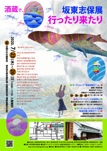 #坂東志保展 行ったり来たり 酒蔵で 4日間だけの展覧会伊丹市立伊丹郷町館 旧岡田家住宅・酒蔵(重要文化財)2020.7/23(木)~26(日) 10:00 ~ 17:30 入館無料 http://www.designdot.co.jp/bando202007.html※コロナ感染対策の為、マスク着用をご理解、ご協力くださいますようお願いいたします。[協賛] 伊丹商店連合会[企画] ドットアートコスモ右脳の散歩道ギャラリー ドットアートキャラバンプロジェクト[問合せ]090-3487-2601 [交通] ●阪急伊丹駅より徒歩約9分 ●JR伊丹駅より徒歩約6分[所在地]兵庫県伊丹市宮ノ前2丁目5番28号 「みやのまえ文化の郷」伊丹市立伊丹郷町館 旧岡田家住宅・酒蔵■ワークショップ『写真連想ゲーム』■ 23・24・25・26日 / 13:00 ~ 16:00 無料・予約不要 3歳~(大人の方も参加可) あなたもアート人!! 作家のアートに参加しませんか! ■ミュージックアートは突然に!■ 23(木)祝日/ 15:30 ~ 16:00 のなかで!#峯本大地(カウンターテナー)、谷林朋香(ピアノ) ■アーティスト・トークビデオ放映『創造の翼、日常がアート』■田中恒子(現代美術コレクター・大阪教育大学名誉教授) × 坂東志保◾️『遠くをみつめていたい』◾️せわしなく送る毎日の中でふとひとりの時間が恋しくなる何気ない景色を眺めながら遠くへお出かけをするのだ例えば「私」という名の海過去の思い出の中で漂うたまに考え込んで深海へ潜ってしまうこともある例えば「未来」という名の空想像という翼で自由に飛び回りときどき実現させてみたりするあるいは地に足をつけてチクタクとこれからの予定を立てたりなんかして本当の「遠く」へ行ってしまうまで行ったり来たりそれじゃあひとりの時間も結局せわしないやんと笑みをこぼし遠くをみつめる時間に想いを馳せる