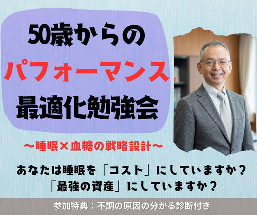 思考のキレ・集中・疲労回復が再び上向く。 50歳からの仕事力を、“睡眠×血糖×自律神経”で根本から立て直す30日設計こんなことを学びます<こんなことを学びます>■1. パフォーマンスが落ちる“本当の原因”がわかる加齢のせいではなく、睡眠・血糖・自律神経の“3つの軸”がどの順で崩れ、思考のキレ・集中力・疲労回復に影響するのかを因果で理解します。■2. 朝のコンディションを決める「夜の設計」就寝前の血糖安定、体温リズム、コルチゾール調整など、翌日の判断力を左右する“夜の条件”が何かを掴みます。■3. 午後に集中力が落ちる理由と、回避する方法“午後の失速”が血糖の波と自律神経の疲弊から生まれる仕組みを理解し、仕事の後半戦でパフォーマンスを残す方法を学びます。■4. 睡眠の質を上げるのは「日中」の過ごし方朝の光、活動量、食事タイミングなど、夜の睡眠を決める“日中のスイッチ”をどこで入れるべきかを知ります。■5. 効果が高い3つの行動で、50代からでも回復は再構築できる膨大な健康習慣は必要ない。科学的に効く3つの行動だけを抽出し、再現性の高い「自分の軸」をつくります。■6. あなたの不調がどのタイプか“構造的にわかる”睡眠の乱れ方、血糖の崩れ方、自律神経のクセを簡易分類し、あなたのパフォーマンス低下の原因がどのパターンかを特定します。