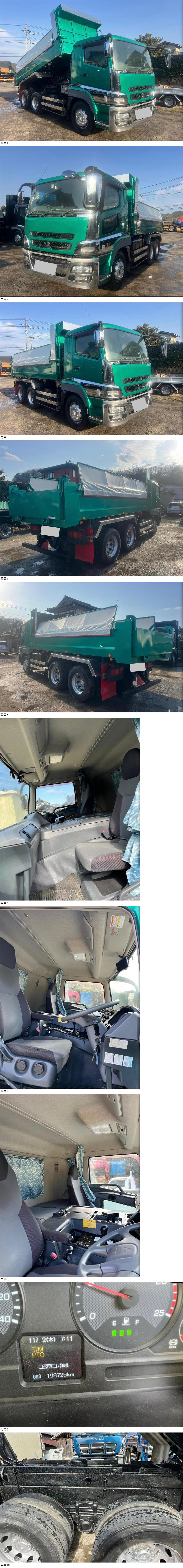 【お問い合わせ番号 493-938】三菱ふそうスーパーグレート ダンプ 型式QKG-FV50VX 積載8,300kg 7速 380PS 走行距離19万km 2デフ 平成26年式 車検付きです。 問い合わせ先は080-9490-1927 まで。 *スペック* メーカー:三菱 車種名:スーパーグレート 初年度登録:平成26年10月 車検:車検付き 型式:QKG-FV50VX 原動機の型式:6R10 乗車定員:2人 サイズ:長さ769cm 幅250cm 高さ323cm 荷台サイズ:長さ520cm 幅210cm 車体の形状: ダンプ 最大積載量:8,300kg 車両重量:11,530kg 車両総重量:19,940kg 走行距離:198726km 2デフ *LINE相談:08094901927* https://ghumantrd.co.jp/line2.jpg *詳細画像* https://agile-yoron-6408.blush.jp/wordpress/auction/493-1.jpg https://agile-yoron-6408.blush.jp/wordpress/auction/493-2.jpg https://agile-yoron-6408.blush.jp/wordpress/auction/493-3.jpg *連絡先* 出品地…茨城県 名称…株式会社グンマン トレーディング 電話番号…080-9490-1927 現車確認、ご質問等お気軽にご連絡ください! (土日祝の現車確認もできます) ホームページ:http://ghumantrd.co.jp *税込価格です。 *エンジン、ミッション共にとても調子が良い車です。 *中古車両のため、現物確認してからの購入をお願いしています。 *ノークレーム・ノーリターンでお願いします。 *茨城県からの出品・発送となります。 *落札後のキャンセルはご遠慮いただいております。 *下取り可能,,,