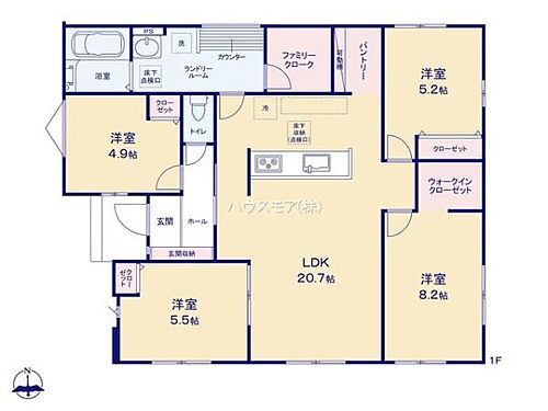 ■間取り詳細:リビングダイニングキッチン 20.7帖(1階)、洋室 8.2帖(1階)、洋室 5.5帖(1階)、洋室 5.2帖(1階)、洋室 4.9帖(1階)