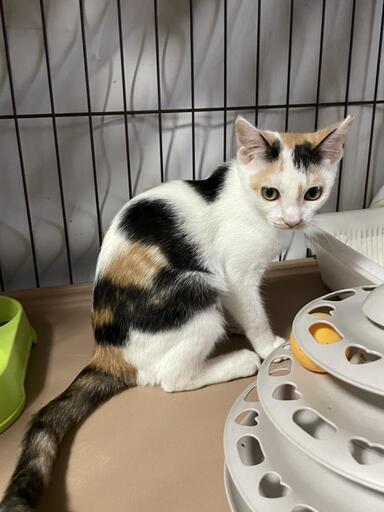 ◆性格や特徴よく人馴れした甘えん坊の可愛い子ですよ!甘えてきたりご飯をさいそくしてきたり走り回ってもそれほどおてんばさんではありません。しっぽは細くて長いです◆健康状態食欲旺盛で元気いっぱいです。避妊手術、ワクチン、血液検査(エイズ白血病共に陰性)、便検査を全て終了しました◆その他・終生、家族として大切にしてくださる方。・室内飼いをして下さる方。・今後写真付きで時々近状報告をお約束してくださる方。・ご家族全員が賛成し動物アレルギーがなく健康な方。・身分証の提示、契約書にサインをしていただける方。・単身者の方、高齢者の応募は要相談です。・1匹での応募も可能ですがもし姉妹で迎えてくださる方がいたら嬉しいです。*里親詐欺から猫たちを守るため、立ち入ったことをお伺いする場合があります。どうかご理解いただけるようお願い申し上げます。
