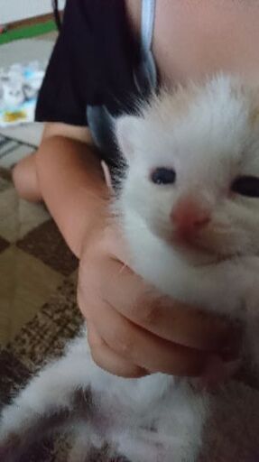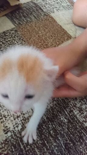 ◆募集に至ったやむをえない事情野良が産み親が居なくなりました。まだ生後間もないため排泄やお手伝いが必要だとおもいます。根気よく育ててくれるかた、至急お願いします◆性格や特徴白いに虎毛がまばらにあります。しっぽはまっすぐです。◆健康状態今日保護して洗いました。異常ないとおもいます◆ワクチン接種、去勢手術の有無していません。◆その他