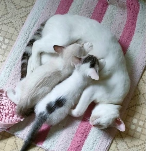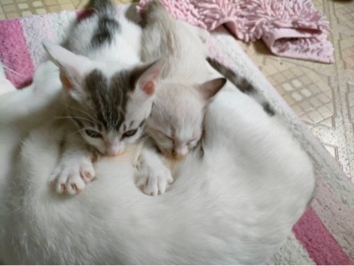 ◆性格や特徴おもちゃでよく遊ぶ元気な女の子です!◆健康状態お母さん猫のミルクを飲んで、子猫用のカリカリも食べます!もう少ししたらノミダニ駆除で病院にかかる時期になります。◆その他姉妹で飼ってくださる方を優先したいと思います。私はつくば市ですが県北に猫ちゃん達は住んでいます。引き渡し場所などご相談にのりますのでよろしくお願いいたします。以前ねこちゃんを飼っていた事がある方、カップルではなく結婚されてる方、アパートでもペット可物件である事と脱走防止策をとってくれる方など、様々な状況をお聞きするかと思いますが、大切に可愛がってくださる方にお願いしたいと思います!親猫は来週に避妊手術をします。