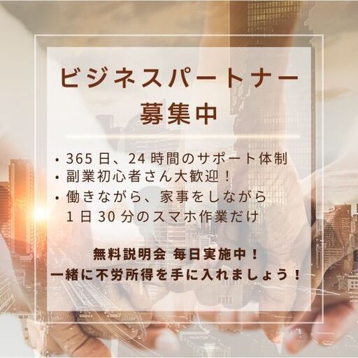 ⭐︎無 料 説明会 開催中⭐︎【作業内容】求人記事作成、お問い合わせやり取り、学びながら稼 いでいただきます。【活動時間】ご自身の出来る時間帯で大丈夫です。1日1時間〜Ok※長期的にお付き合いできる方で、業 務 連 絡をコマメにとれる方を希望。【報 酬】基本的にはご自身が稼 ぎ た い金額目標に向けてお 仕 事をして頂きます。※やる気のある方を募集しています。説明会、個別面談にて選定させていただきます。もしご興味、質問などあれば下記連絡先までお問い合わせください。◎お 仕 事 開始までの流れアンケート審査↓説明会↓個別ヒアリング↓お 仕 事 開 始お問い合わせ▶ https://lin.ee/3NWrs4B