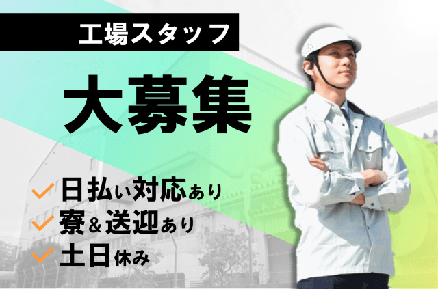 日払い週払いOK/土日休み・長期休暇あり/寮完備・無料送迎あり/WEB面接可/もくもく作業