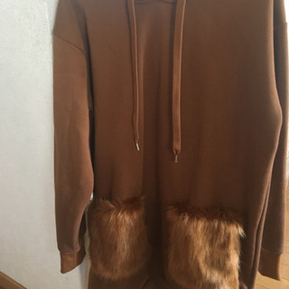 パーカー ワンピ ポケットファー ブラウン size⇨M 可愛いと思います 使用は一回だけなのですが 写真4枚目の左上に薄めのシミあり 右袖にも薄いシミあり