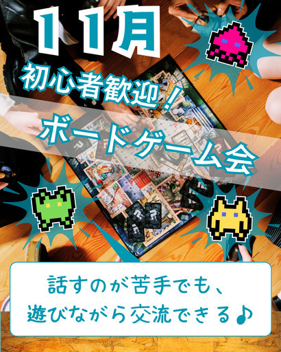 前回と会場が異なります。ご注意ください。ボードゲームを通じて交流してみませんか?初心者の方も歓迎いたしますよ。この募集は「コミュニケーションが苦手・社会になかなか適応できない方々」を支援する団体「ばなうた」が企画しています。知らない人と会うのが不安な方でも、しっかりフォローできるので、安心してご参加ください。この募集では、ボードゲーム大好き「たきた」が、オススメゲームをいくつかご用意して、皆様をお待ちしております。初心者の方でも分かりやすく、やり方をご説明しますので、どなたでも安心してご参加ください。ボードゲームには、話すのが苦手な方でも深く考えずにみんなと交流できる魅力があります。友達が欲しい方、新しい趣味を持ちたい方、誰かと話したいけど何を話せば良いか分からない方、ぜひ遊びに来てください!もちろん慣れている方のご参加もOKです。ボードゲーム好き同士、一緒に盛り上がりましょう!良ければご自身のオススメゲームを持参していただけると、とても嬉しいです。ご興味ある方いらっしゃいましたら、ぜひご連絡ください!なお、こちらの都合で申し訳ありませんが、10月29日(水)までに参加希望者が3名以下なら中止にいたします。あらかじめご了承ください。<募集情報>募集名11月ばなうたボードゲームクラブ開催日2025年11月3日(月) 13:00~17:00 ※祝日開催開催場所神奈川県川崎市多摩区登戸1775−1多摩市民館 4階・第3会議室(JR南武線登戸駅から徒歩10分)(小田急線向ヶ丘遊園駅北口から徒歩5分)費用500円(会場のレンタル費用等にあてさせていただきます)定員10名まで担当「たきた」備考少しですが、お菓子ご用意します。飲み物は各自持参でお願いします。参加人数が多かった場合、雑談する時間も設けます。施設の利用について会場内は完全禁煙となっております。会場はアルコールの持ち込みは不可となります。ゴミは各自持ち帰るようお願いいたします。以下の方は参加をお断りします宗教・マルチビジネス・市民活動・政治活動などの団体勧誘を行う方ボードゲーム及び施設機材等を大事に扱わない方他のボードゲーム会・ボードゲームカフェで出禁の方他のボードゲーム会・ボードゲームカフェの主催と重大なトラブルを起こした方他プレイヤーへの暴言等不快になる行為をする方